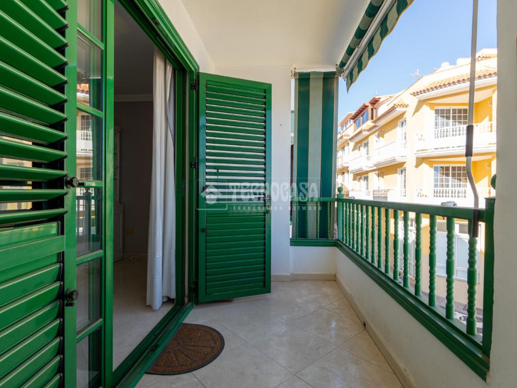 La propiedad cuenta con 60 m² distribuidos en una amplia habitación con armarios empotrados, un baño completo con plato de ducha, salón con cocina integrada, un práctico patio interior y un balcón exterior que aporta luz natural a la vivienda. Se encuentra en una primera planta sin ascensor, en un edificio tranquilo y bien ubicado.